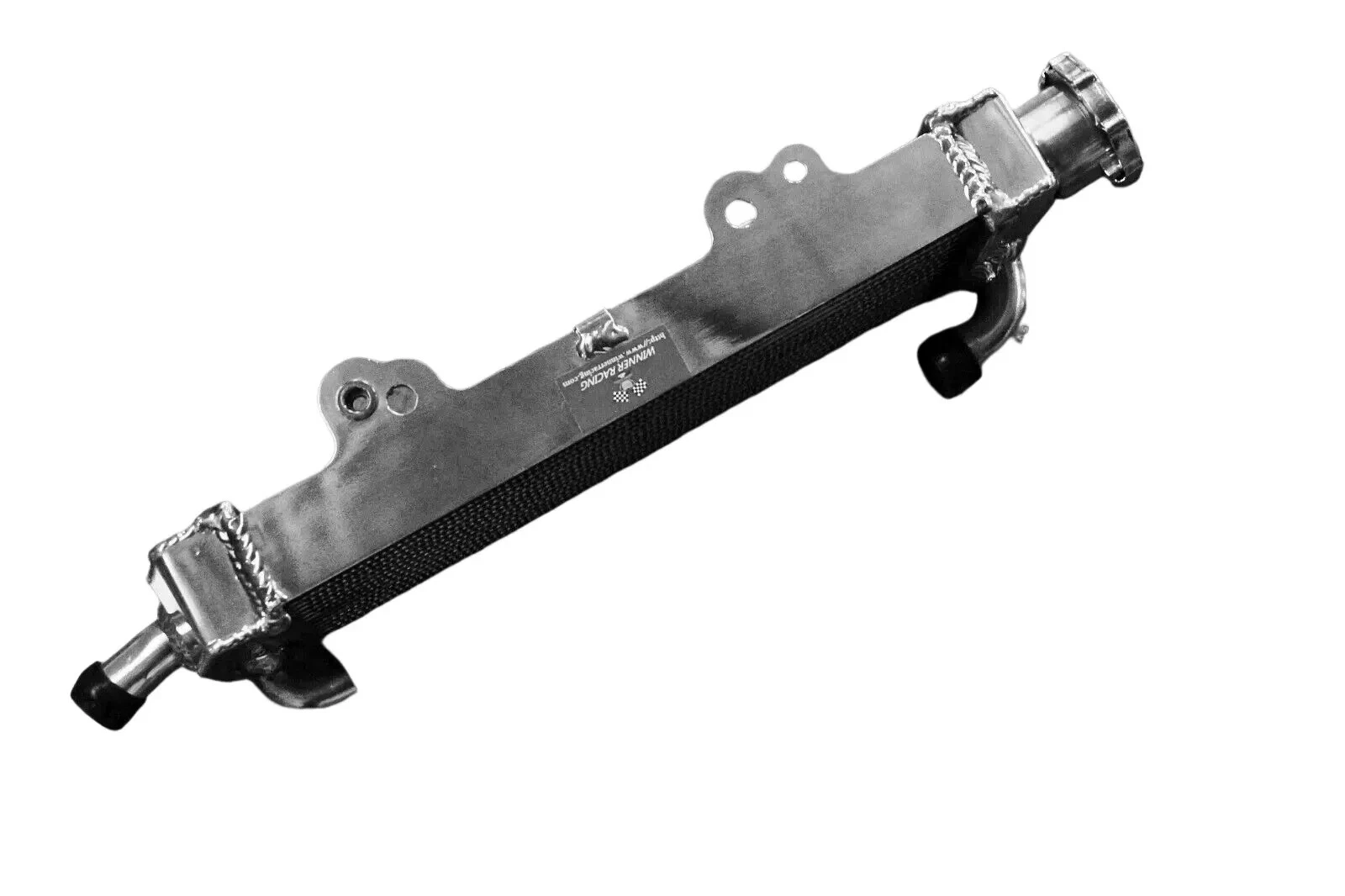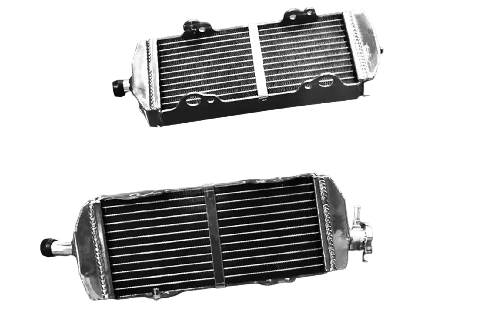 RADIATOR is heavy duty designed, comes with 2 row thick core.The core of the radiator is welded in vacuum brazing furnace, no epoxy. The tanks are 100% welded by TIG.The material of the radiators is the same as aircraft manufacture material.