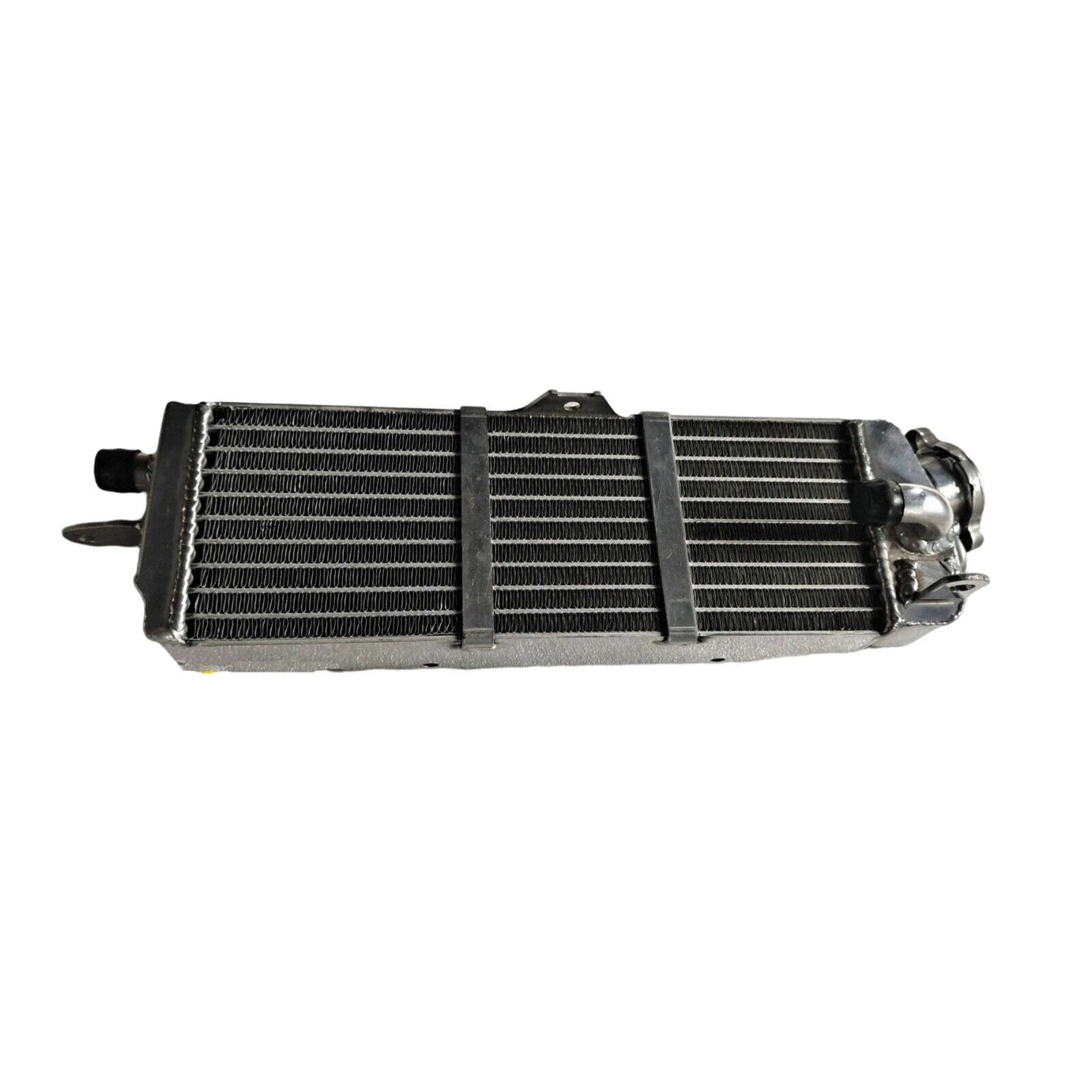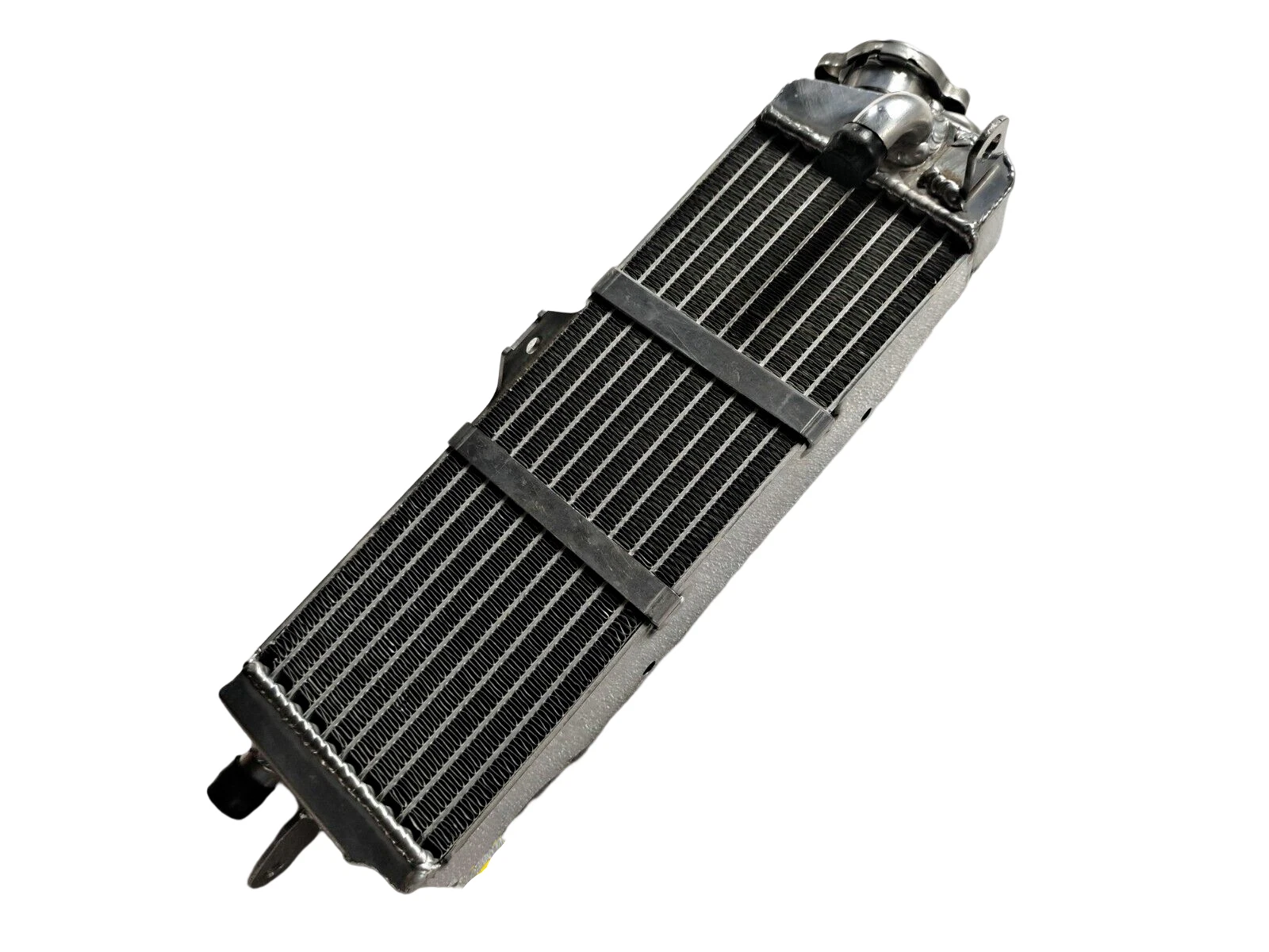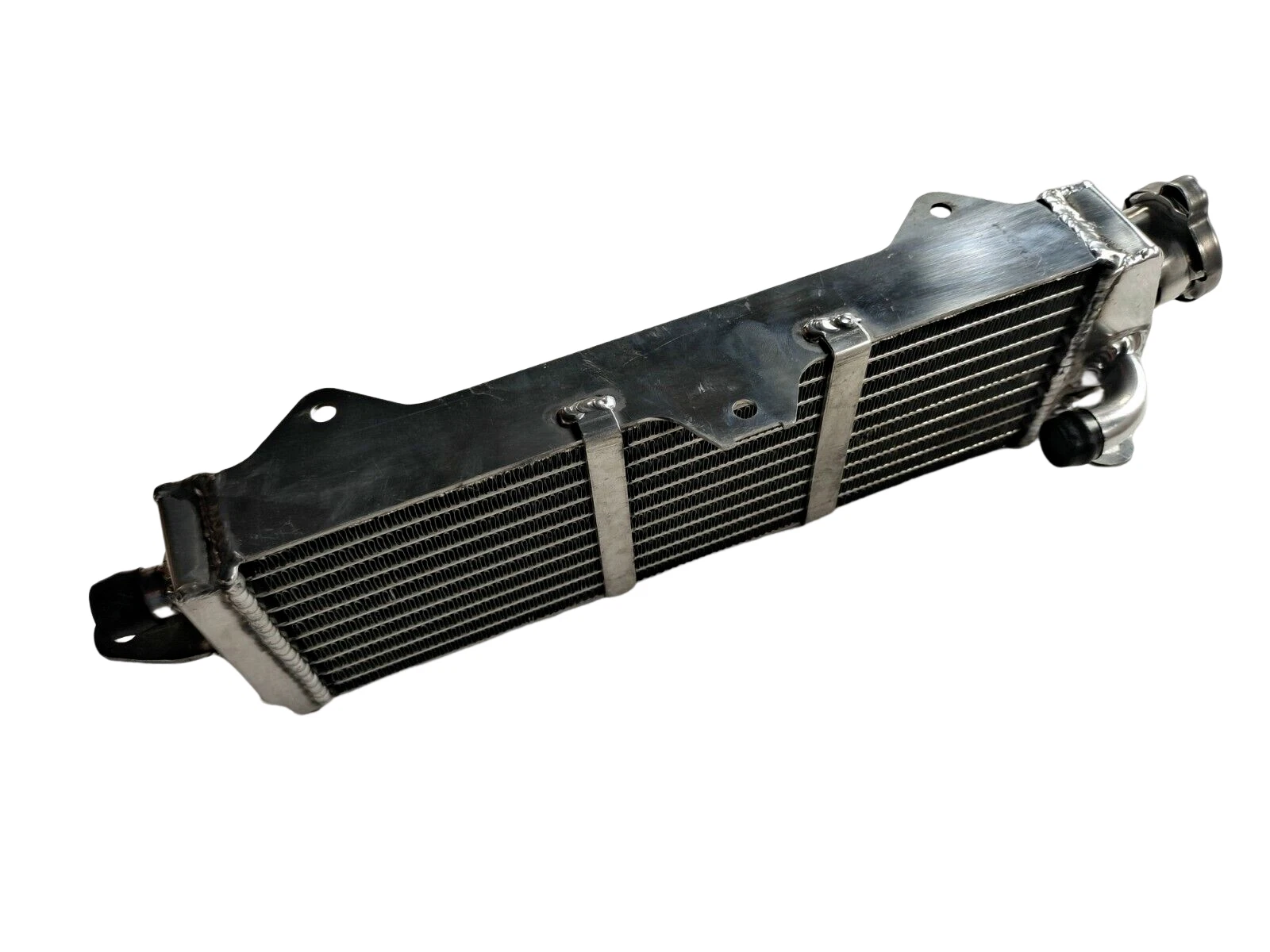 RADIATOR is heavy duty designed, comes with 2 row thick core.The core of the radiator is welded in vacuum brazing furnace, no epoxy. The tanks are 100% welded by TIG.The material of the radiators is the same as aircraft manufacture material.