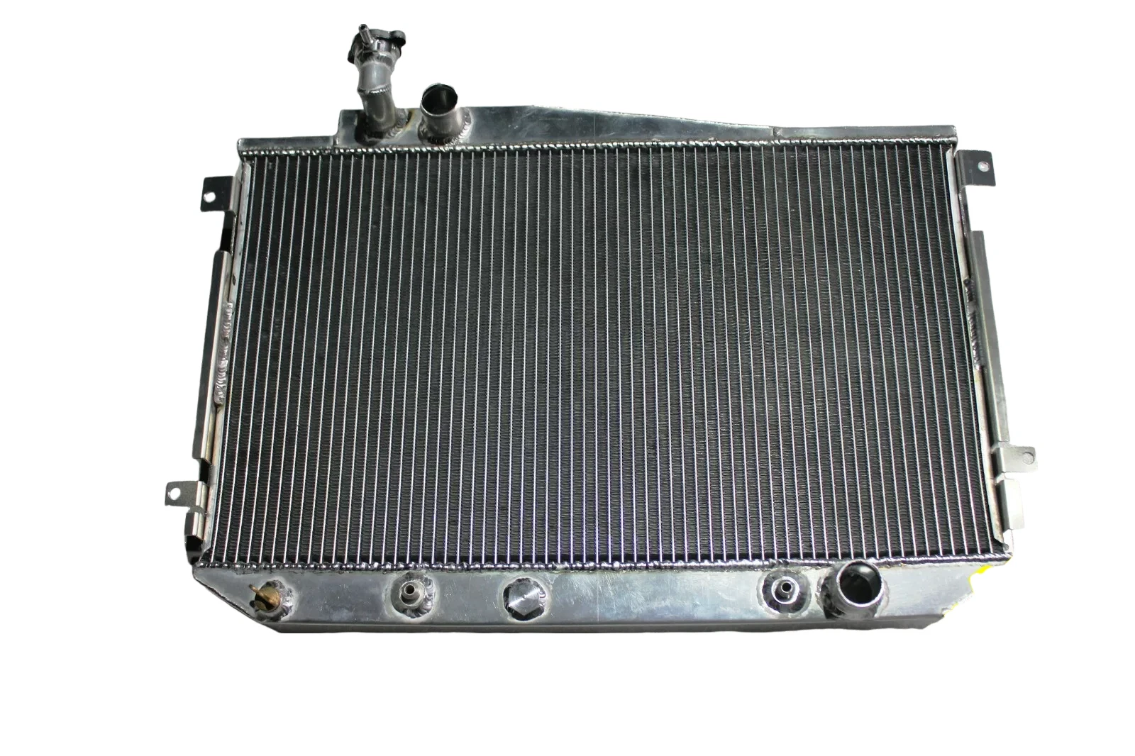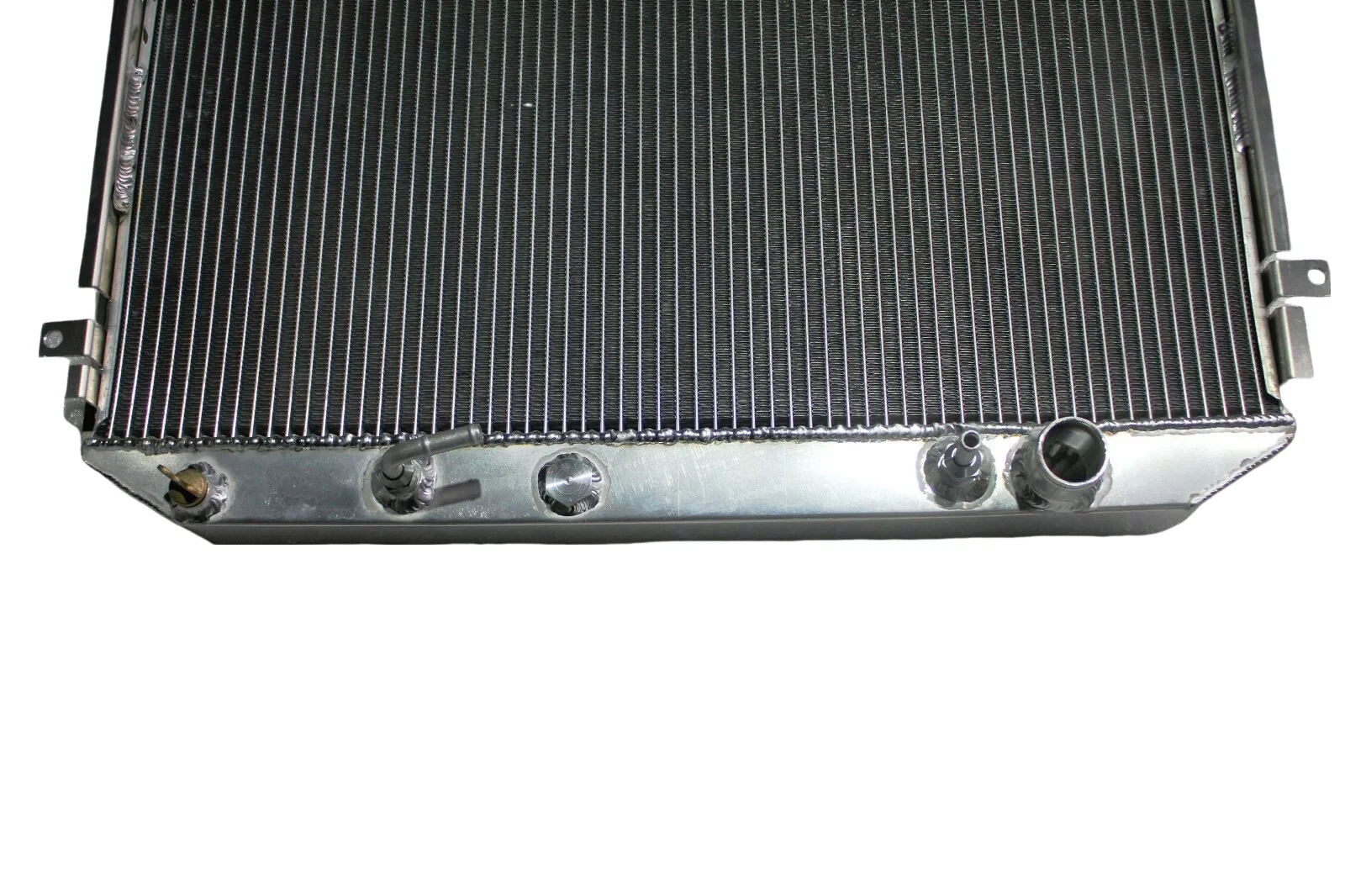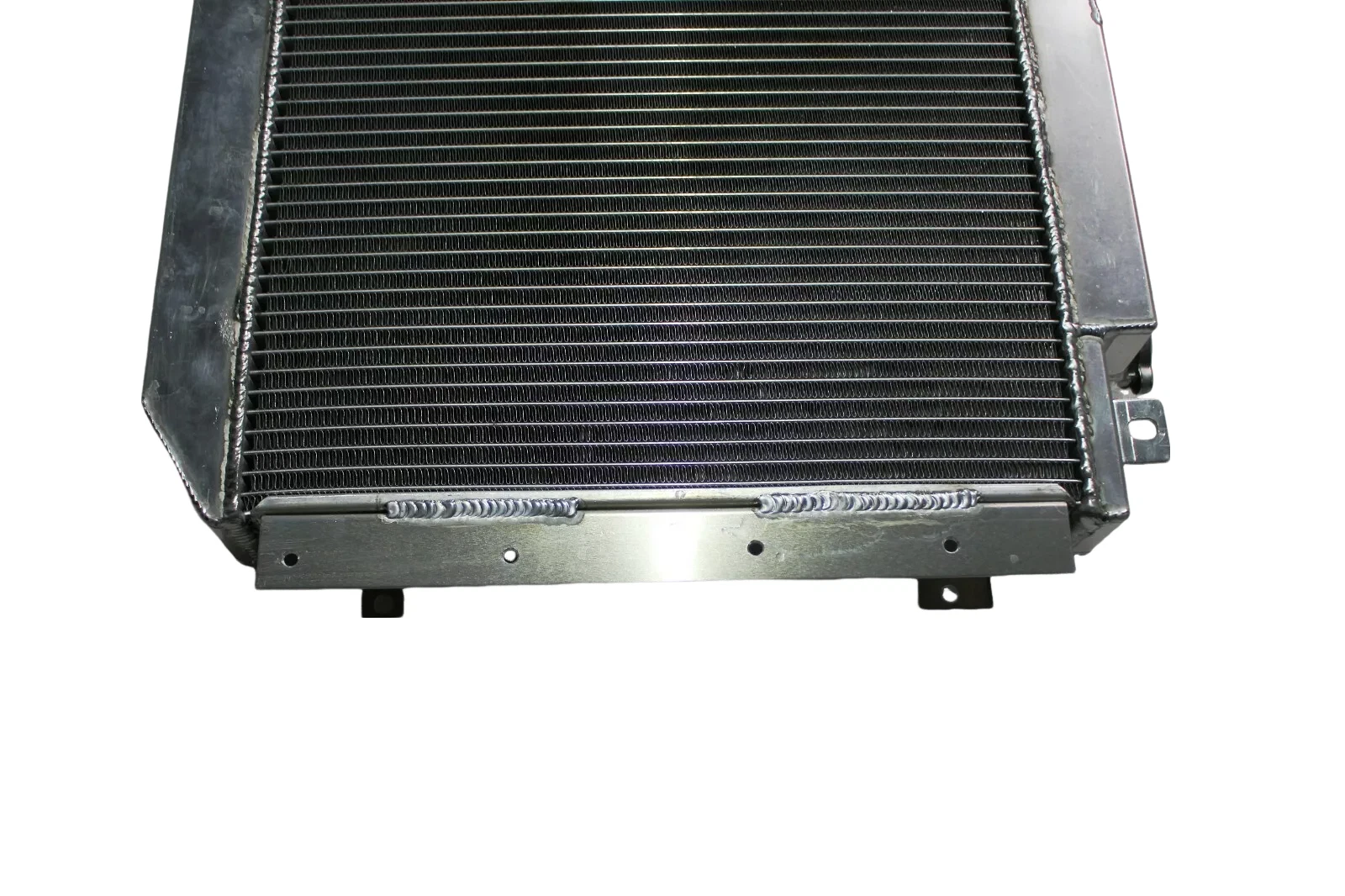 RADIATOR is heavy duty designed, comes with 2 row thick core.The core of the radiator is welded in vacuum brazing furnace, no epoxy. The tanks are 100% welded by TIG.The material of the radiators is the same as aircraft manufacture material.