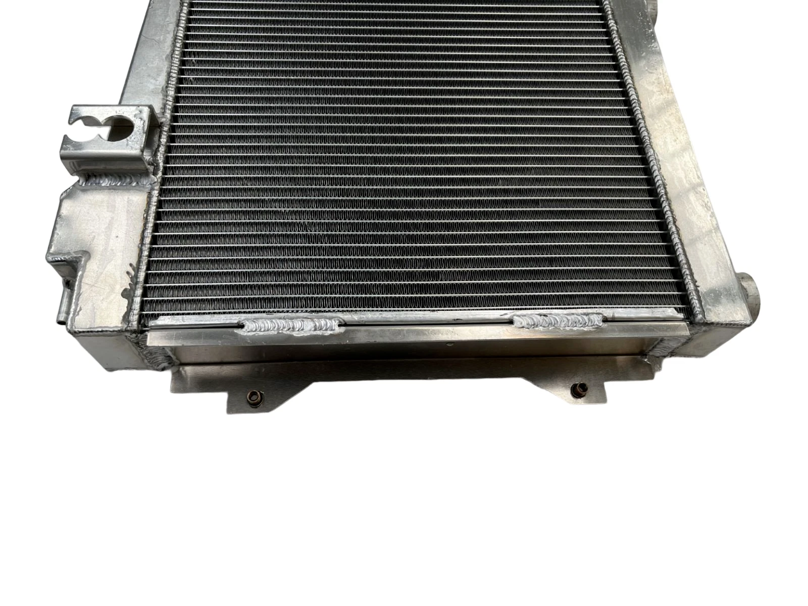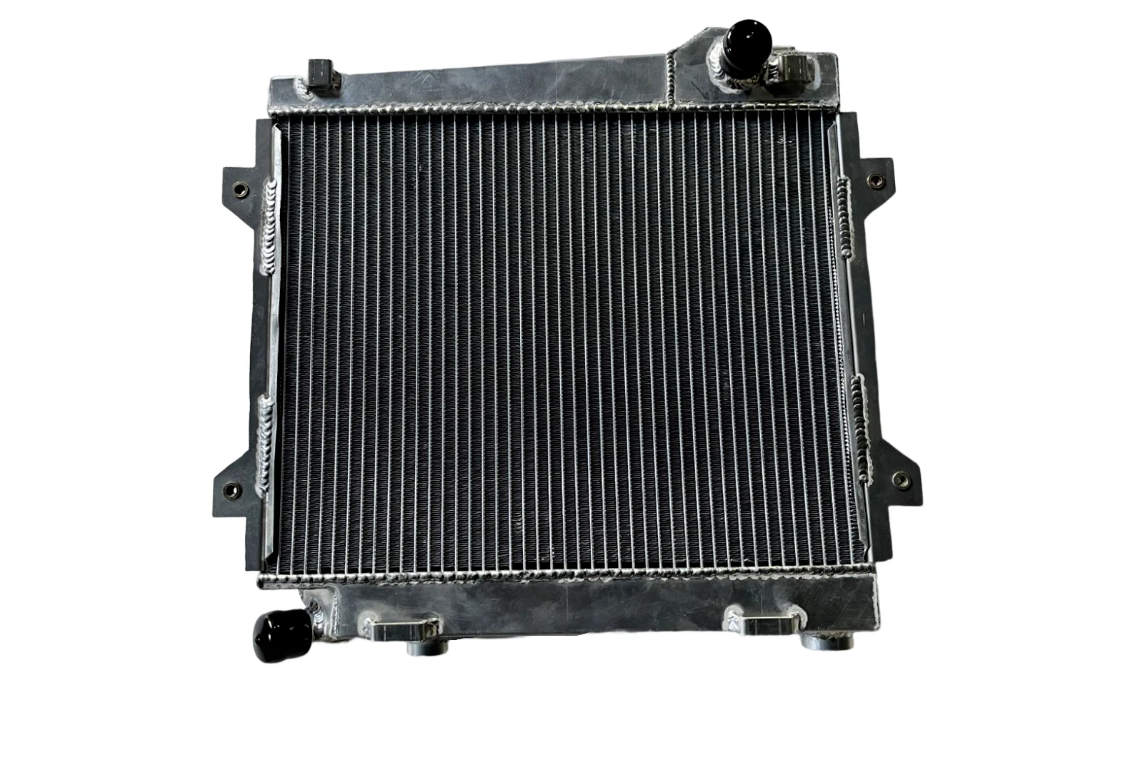 RADIATOR is heavy duty designed, comes with 2 row thick core.The core of the radiator is welded in vacuum brazing furnace, no epoxy. The tanks are 100% welded by TIG.The material of the radiators is the same as aircraft manufacture material.