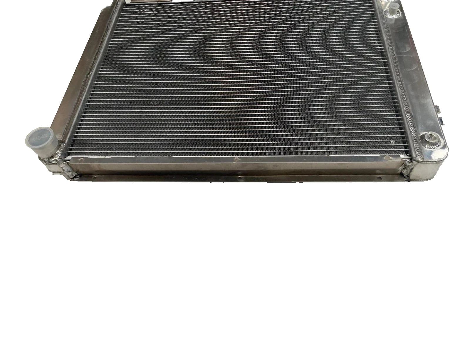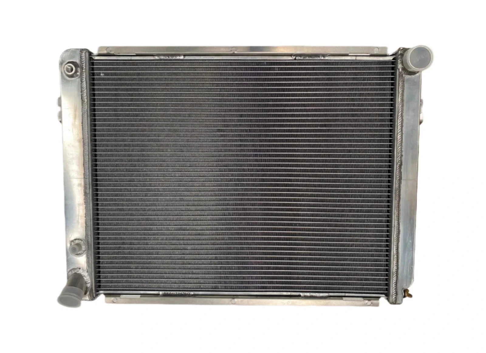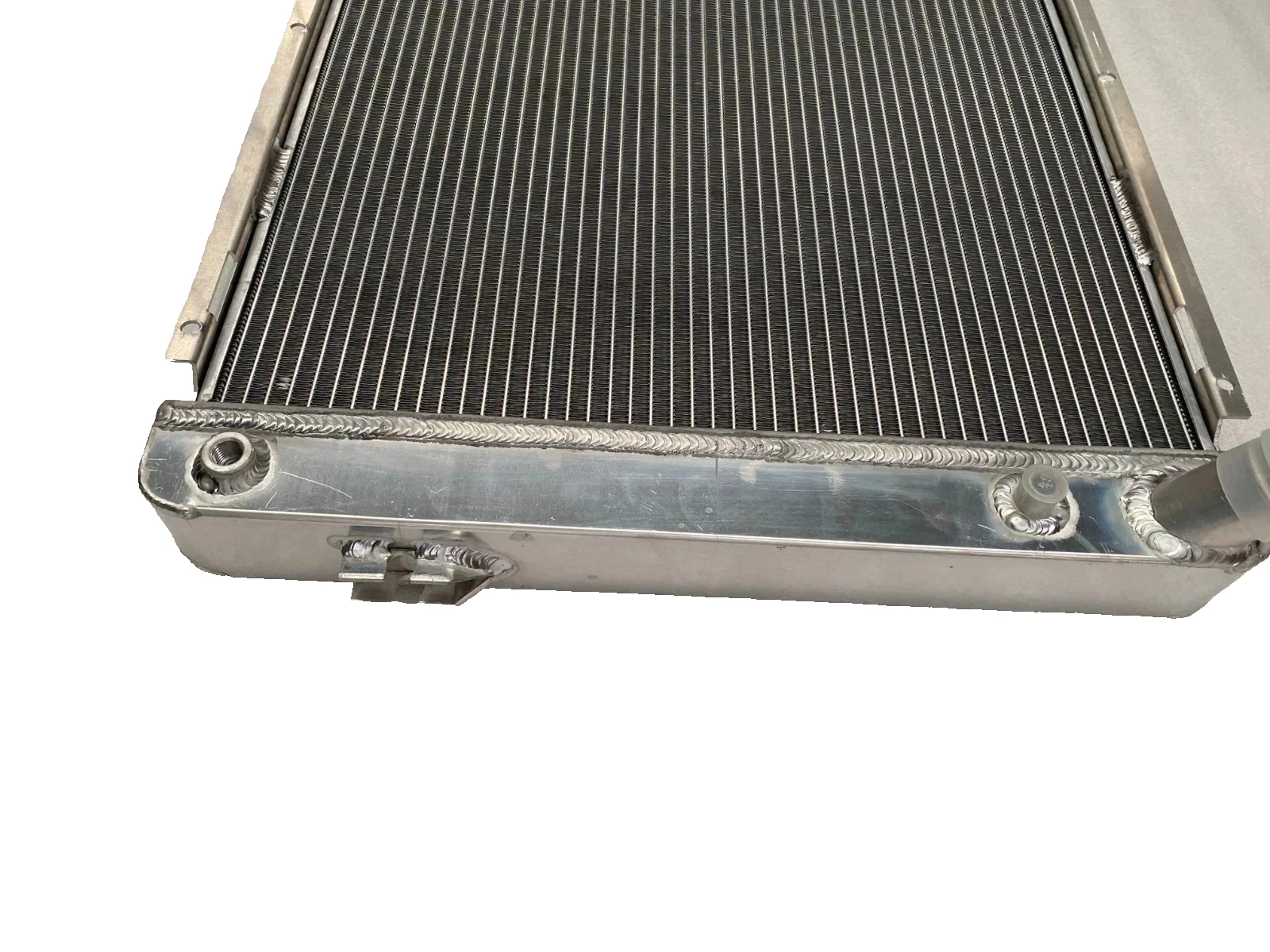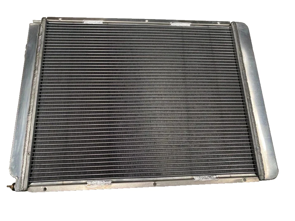 RADIATOR is heavy duty designed, comes with 2 row thick core.The core of the radiator is welded in vacuum brazing furnace, no epoxy. The tanks are 100% welded by TIG.The material of the radiators is the same as aircraft manufacture material.
