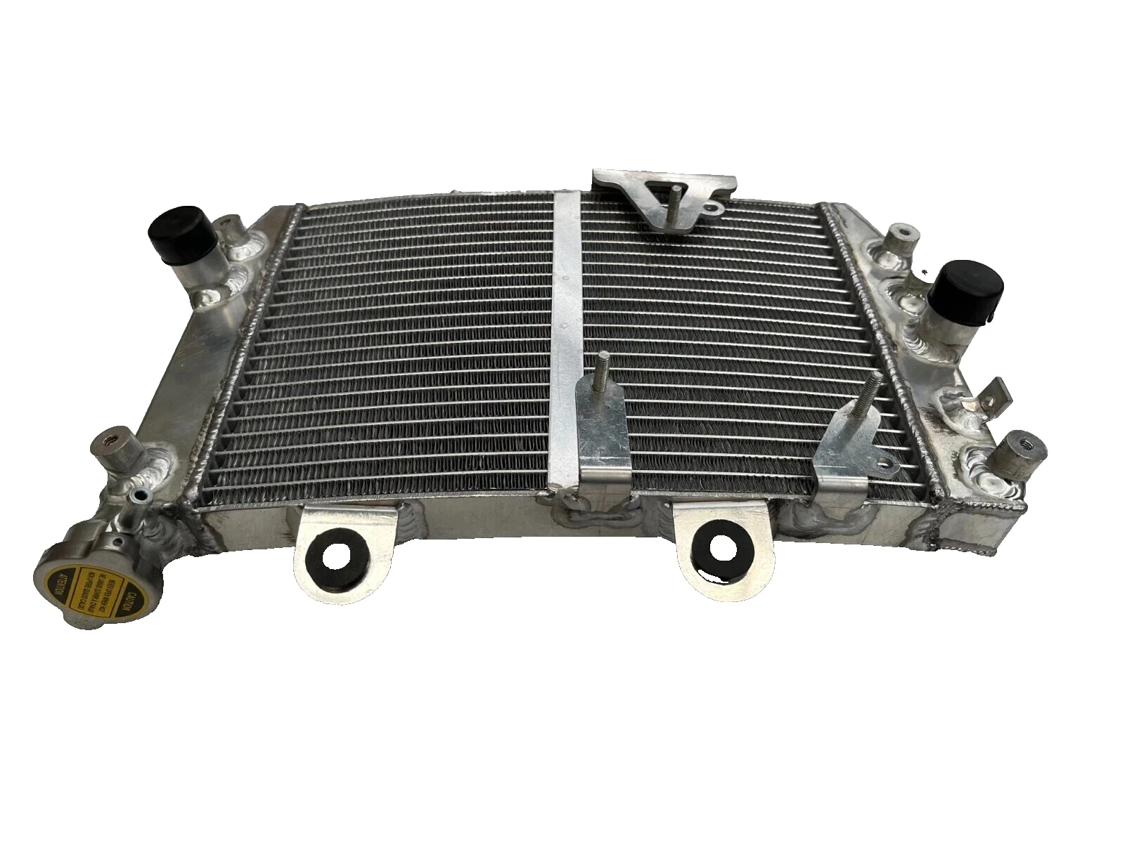 RADIATOR is heavy duty designed, comes with 2 row thick core.The core of the radiator is welded in vacuum brazing furnace, no epoxy. The tanks are 100% welded by TIG.The material of the radiators is the same as aircraft manufacture material.