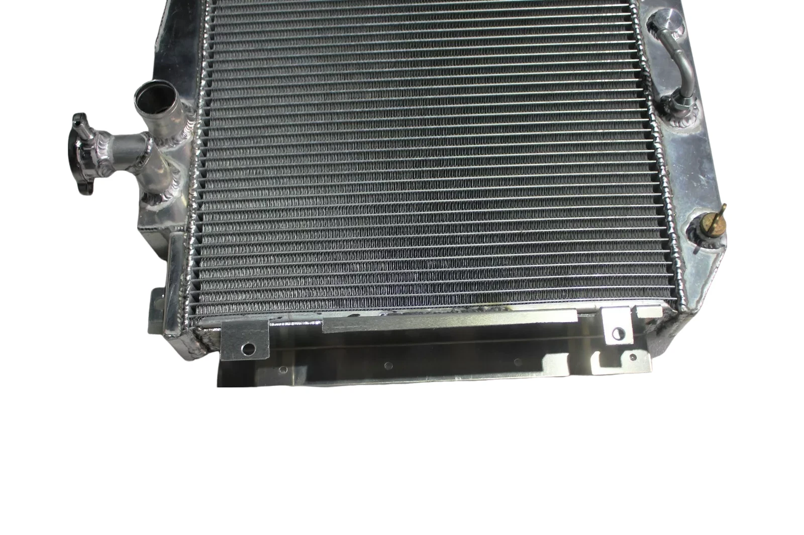 RADIATOR is heavy duty designed, comes with 2 row thick core.The core of the radiator is welded in vacuum brazing furnace, no epoxy. The tanks are 100% welded by TIG.The material of the radiators is the same as aircraft manufacture material.