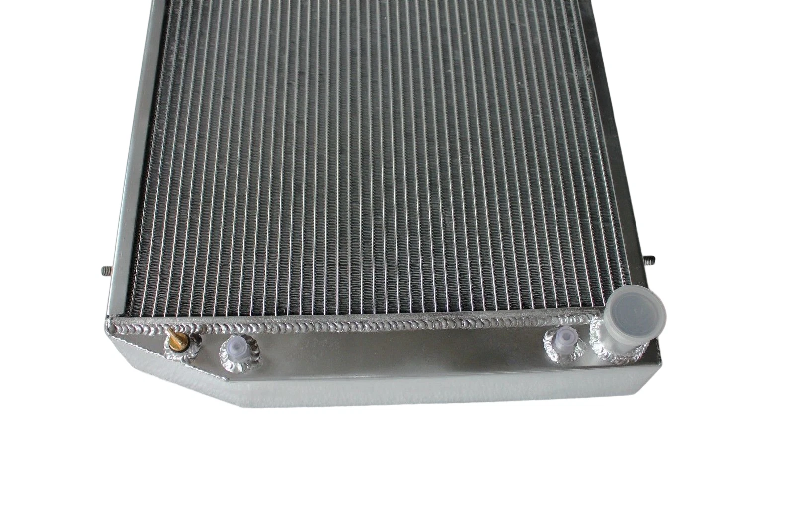 RADIATOR is heavy duty designed, comes with 2 row thick core.The core of the radiator is welded in vacuum brazing furnace, no epoxy. The tanks are 100% welded by TIG.The material of the radiators is the same as aircraft manufacture material.