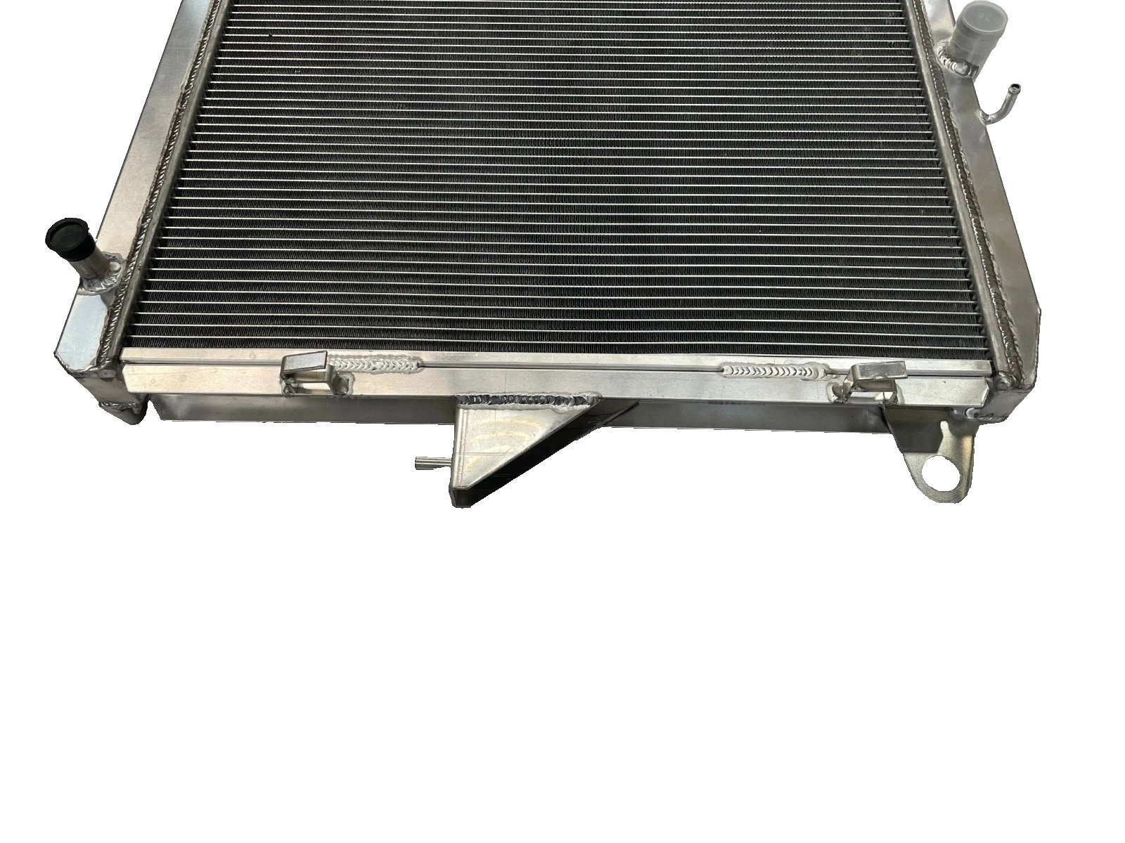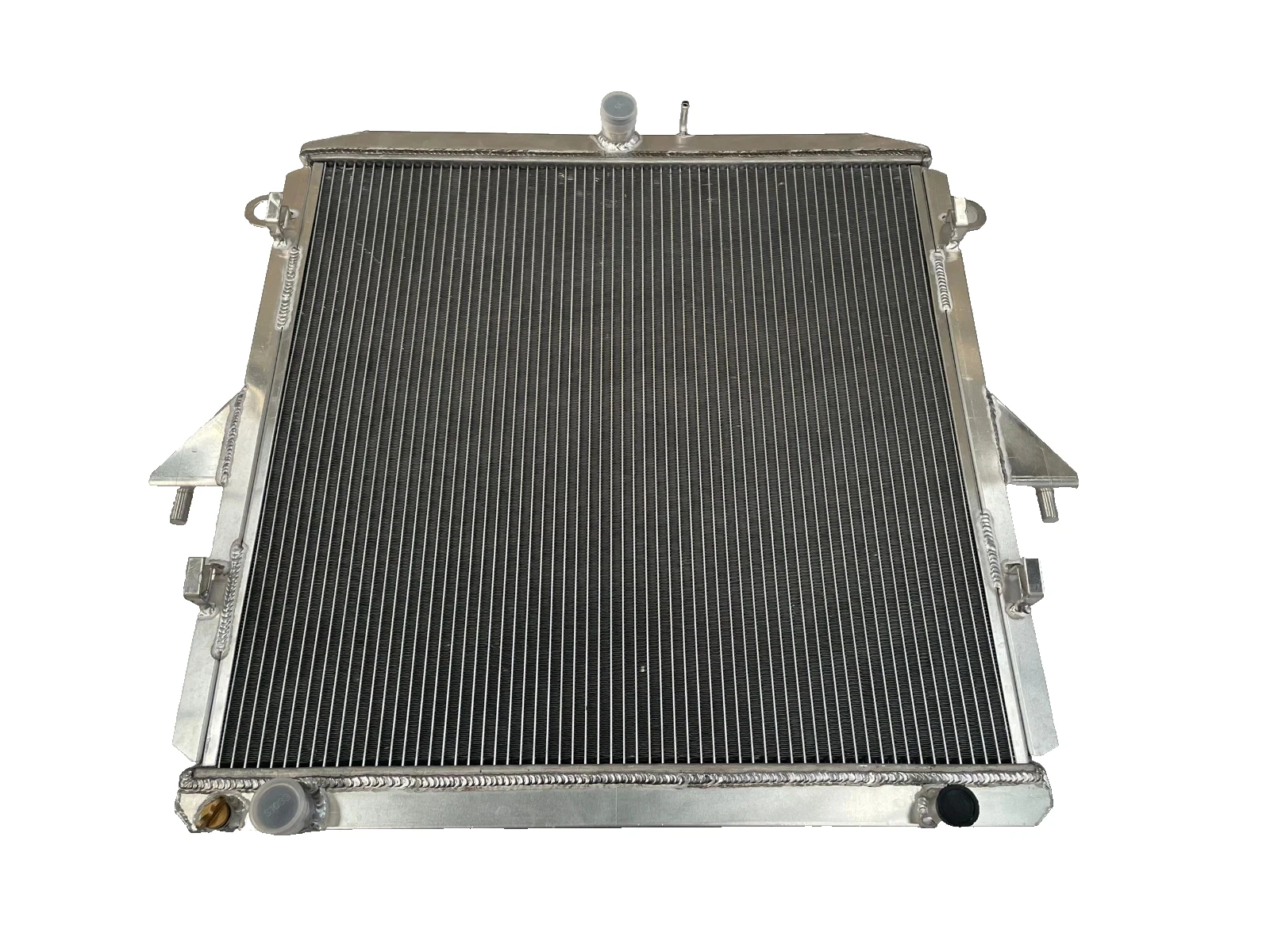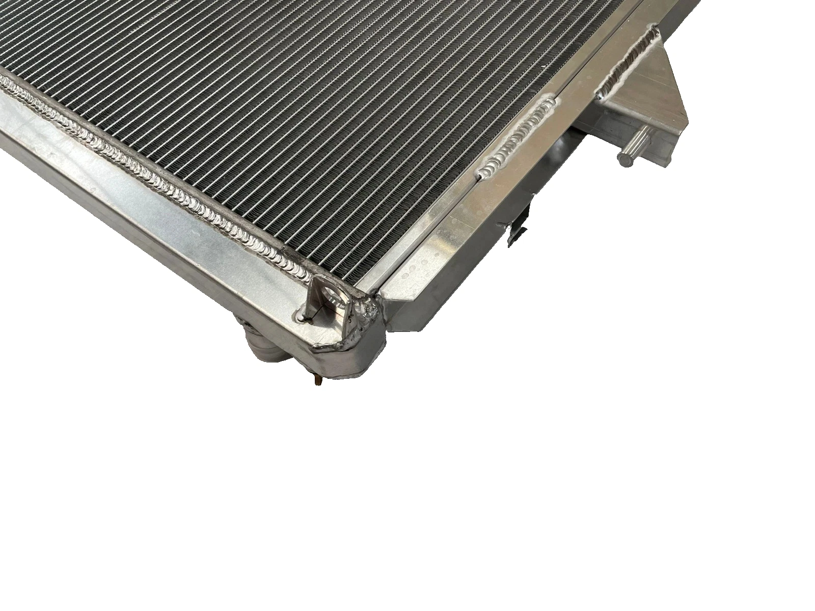 RADIATOR is heavy duty designed, comes with 2 row thick core.The core of the radiator is welded in vacuum brazing furnace, no epoxy. The tanks are 100% welded by TIG.The material of the radiators is the same as aircraft manufacture material.