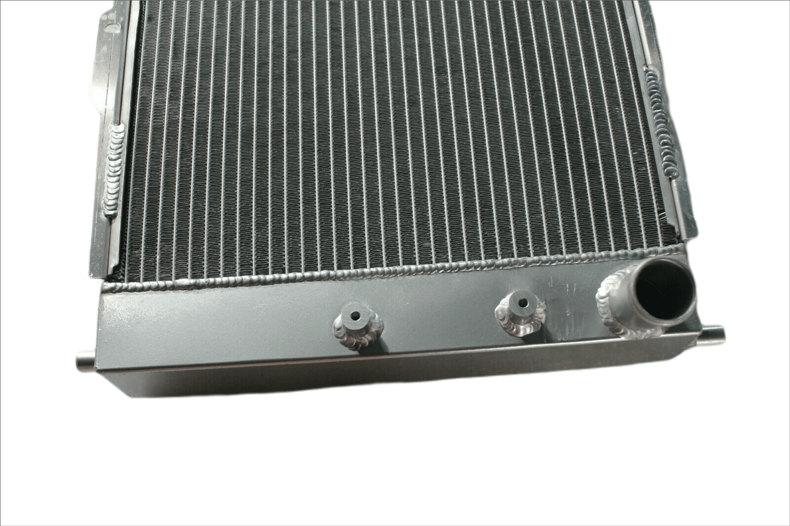 This radiator is heavy duty designed, comes with 2 row 56mm thick core, cooling capacity is 35% ,it can support the engine power up to 450HP.